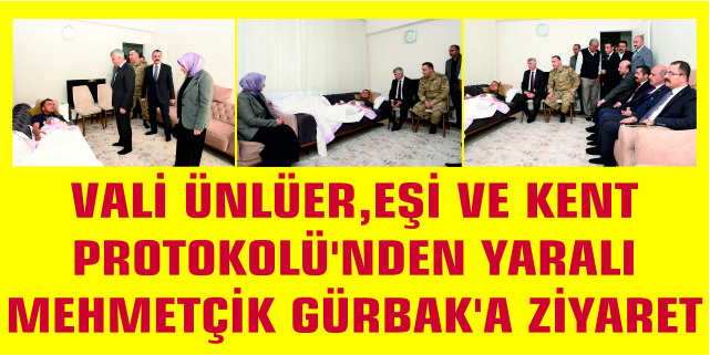 Kahraman Mehmetçiğimiz Faruk Gürbak ve ailesine geçmiş olsun dileklerinde bulunan Vali Mükerrem Ünlüer ve Eşi Dr. Selma Ünlüer Hanımefendi, gazimiz Gürbak’ın sağlık durumu hakkında bilgi aldı.