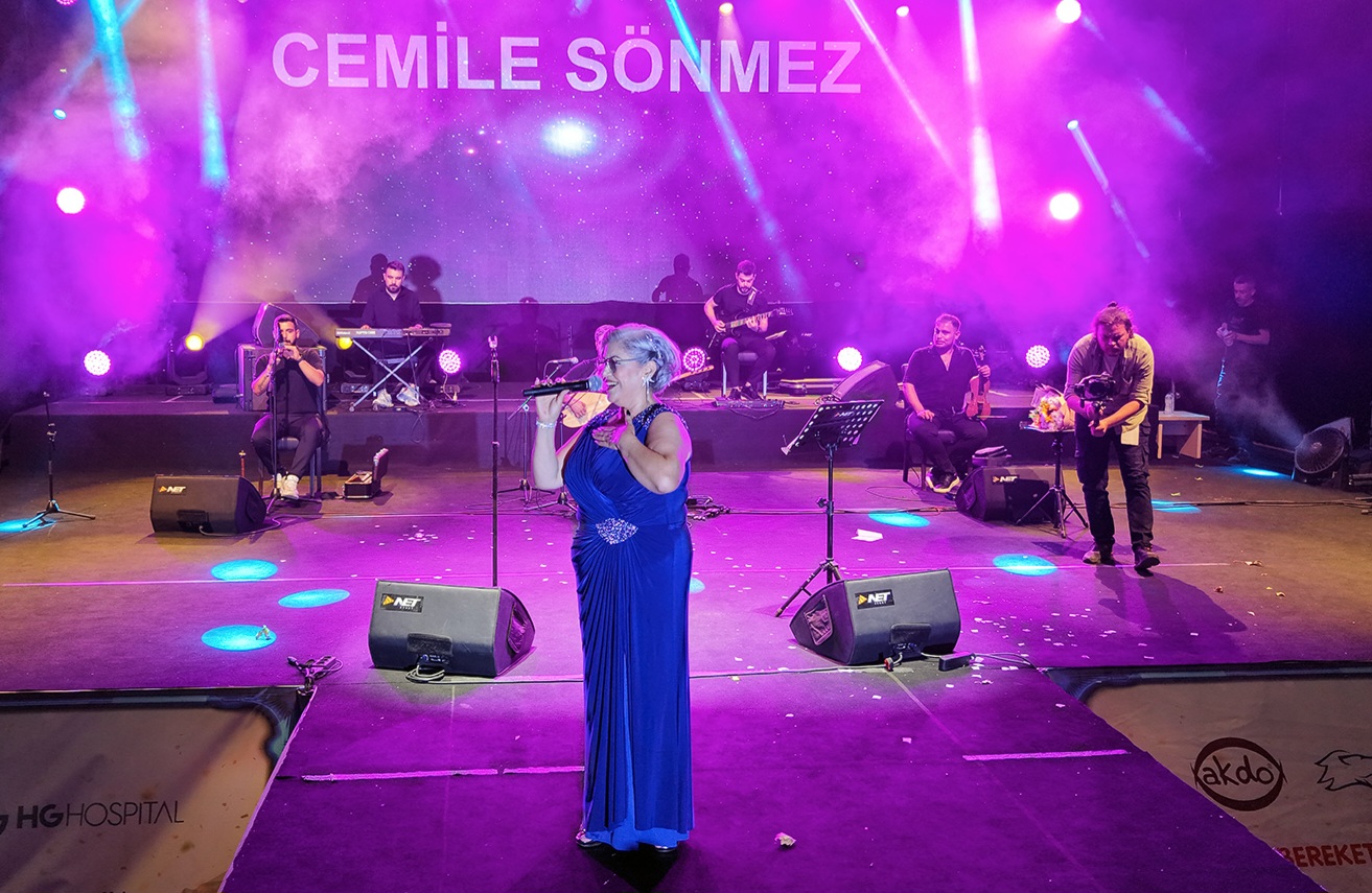 Geleneksel Ağustos Fuarı’nda sahne alan Cemile Sönmez, geniş repertuvarı ve güçlü sesiyle müzikseverlere unutulmaz bir gece yaşattı.