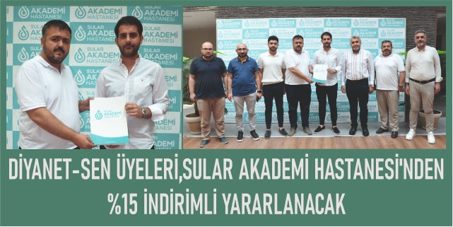 İndirim protokolü Kahramanmaraş Diyanet-Sen Şube Başkanı ve DSİ Camii İmam Hatibi Abdülaziz Yenice ve Özel Sular Akademi Hastanesi Yönetim Kurulu Üyesi Mehmet Can Sular arasında imzalandı.