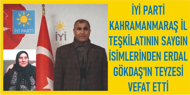 İYİ Parti Kahramanmaraş il Yönetim kurulu üyesi,Elmalar bölgesinin sevilen ismi Erdal Gökdaş,teyzesini kaybetmesinin üzüntüsünü yaşıyor.