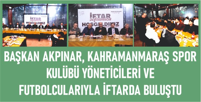 Sporun ve Sporcunun Dostu olarak kabul edilen Dulkadiroğlu Belediye Başkanı Belediye Başkanı Mehmet Akpınar, Belediye Başkan Yardımcısı Fatih Yıldız ve Özel Kalem Müdürü Adem Aydoğan ile birlikte, Kahramanmaraş Spor Kulübü Başkanı Dr. Fatih Mehmet Ceyhan, kulüp yönetimi ve futbolcularıyla iftar sofrasında bir araya geldi.